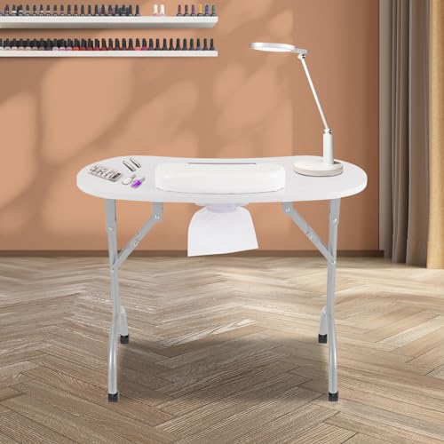 Shiyinge manikyrbord nagelrekonstruktion nagelstudio-bord rullar salong manikyrbord med sug fällbart nagelbord bärbart modern trimning skönhet nagelvård tillgänglig (vit)