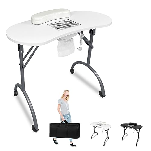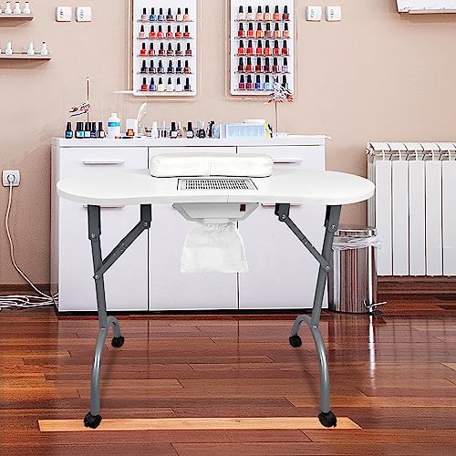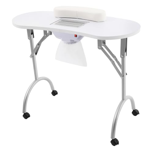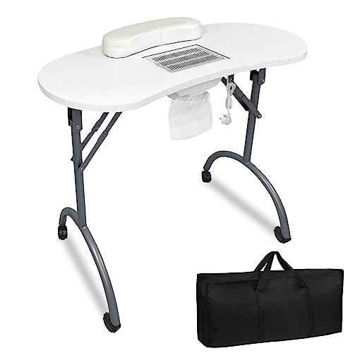 YARDIN Nagelbord manikyrbord med sug, vitt mobilmanchanikyrbord, vikbart med nageldammsugare, hjul och handledskudde för dammutsugning, nagelstudio, 90 x 37 x 77 cm