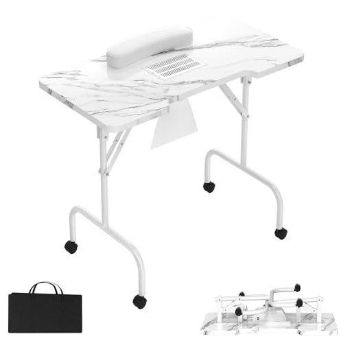 Manikyrbord hopfällbart nagelbord med elektrisk dammsamlare manikyrbord marmor ser vit ut