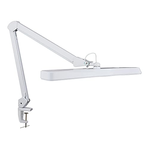 Neatfi Arbetslampa – 2500 Lumen, 30W, 56cm Brett Lampskärm, 4 Ljusstyrkenivåer, Ögonvänligt Ljus, Klämfäste, LED Arbetslampa för Manikyrbord, Hantverk, Arbetsbänk och (Icke-CCT med Klämma, Vit)