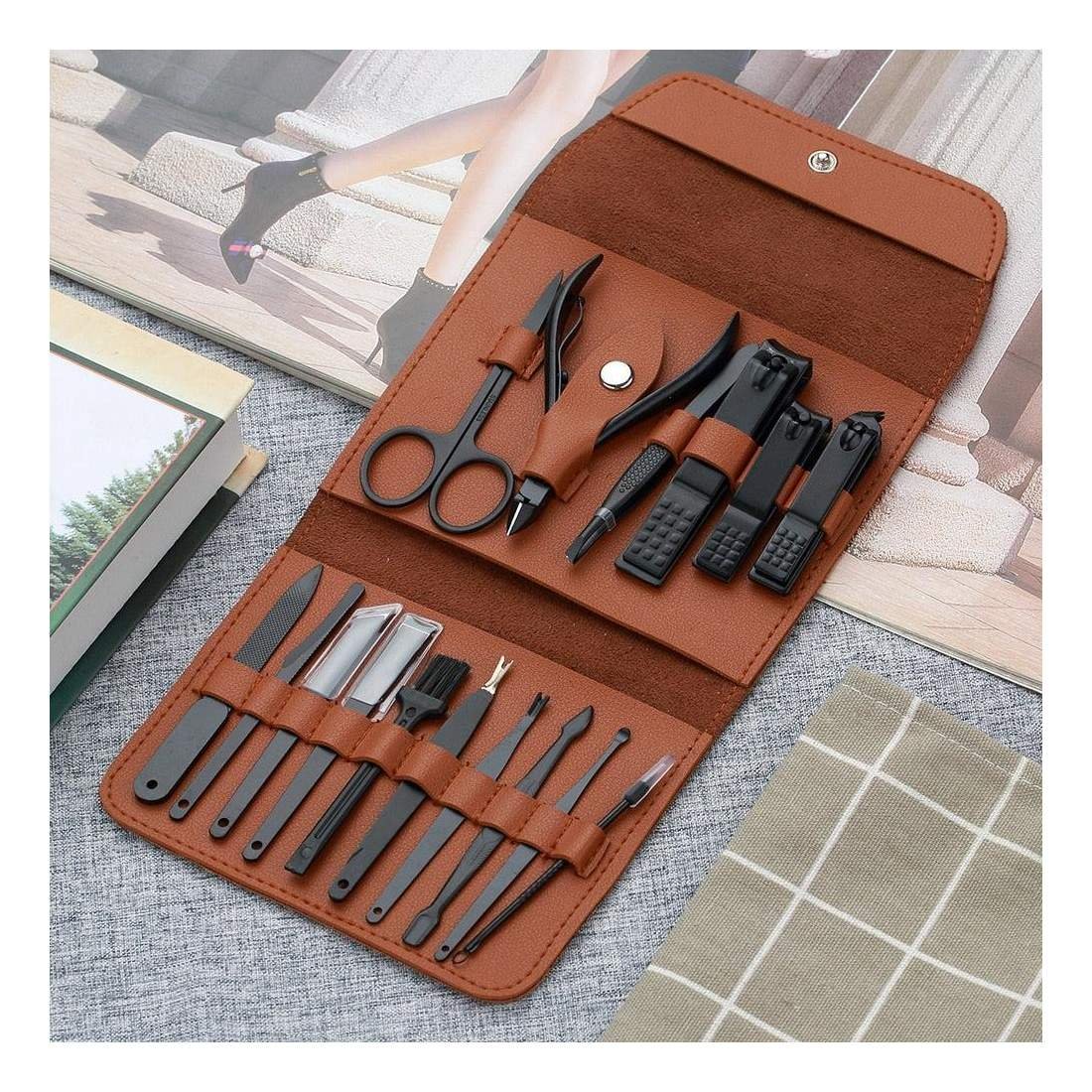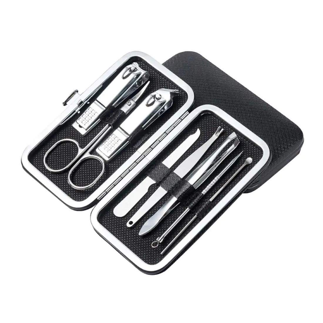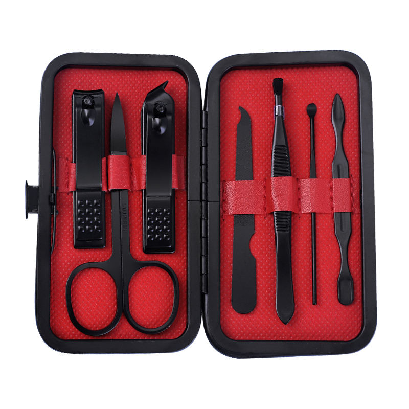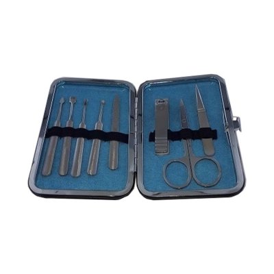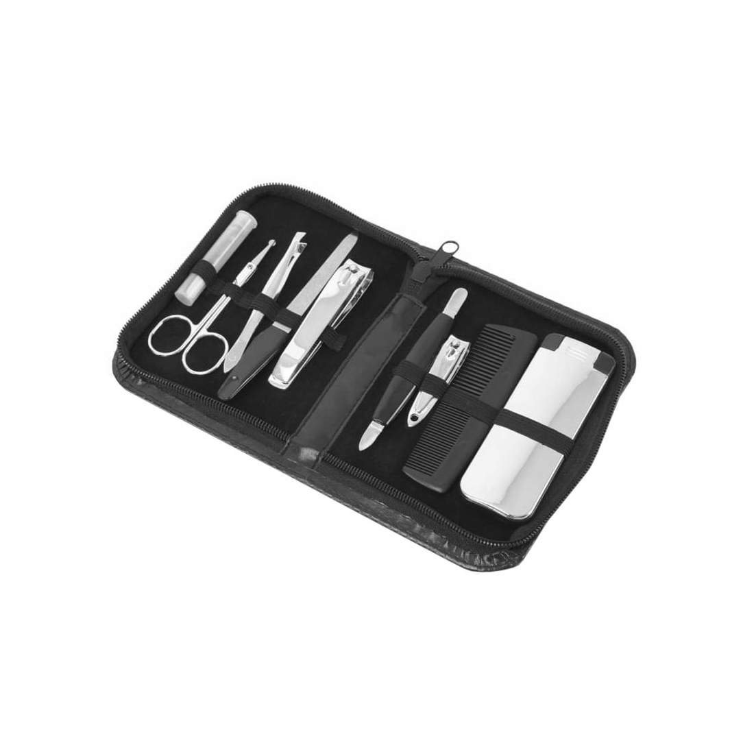 Manikyrset i rostfritt stål med 7 delar och praktiskt fodral