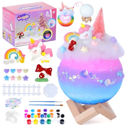 Yellcetoy gör-det-själv månlampa hantverkskit för barn, 3D-konst och hantverk målningskit enhörning nattlampa gåvor leksaker för flickor, tonårstjejer pojke födelsedagspresent åldrarna 6 7 8 9 10 11