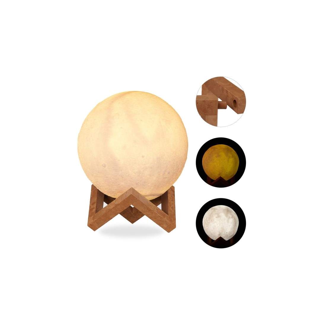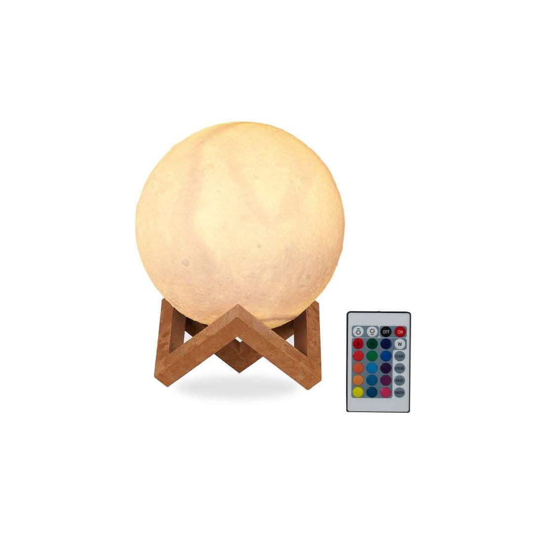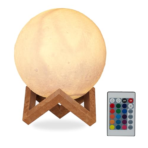 Relaxdays månlampa 3D, 16 färger, dimbar, fjärrkontroll, trådlös, med stativ, barn, månlampa LED, 15 cm, vit