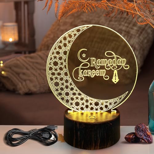Bseical Ramadan dekorativt ljus, Eid Mubarak-dekoration, islam dekorationsbord, muslimsk månlampa, ramadan-lanterna akryl 3D LED halvmåne, lampa, ramadan, kareem, bordslampa måne, stjärna, moské, lås,