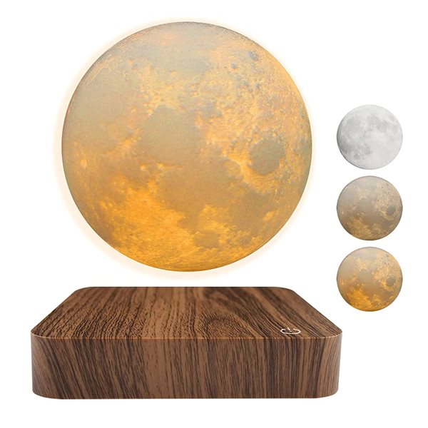 VGAzer Leviterande månlampa som svävar och snurrar fritt i luften med träbas och 3D-tryck från Moon Light, för unika festgåvor, sovrumsdekor, nattlampa