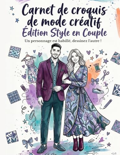 Carnet de croquis de mode créatif : Édition Style en Couple: Un personnage est habillé, dessinez l'autre ! Livre interactif avec mannequins homme et ... Parfait pour les stylistes en herbe