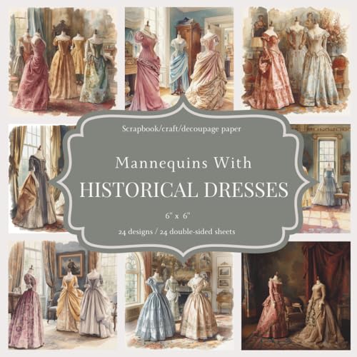 Mannequins with Historical Dresses: Scrapbook, craft, decoupage paper, 24 designs, 24 double-sided sheets, 6'' x 6''