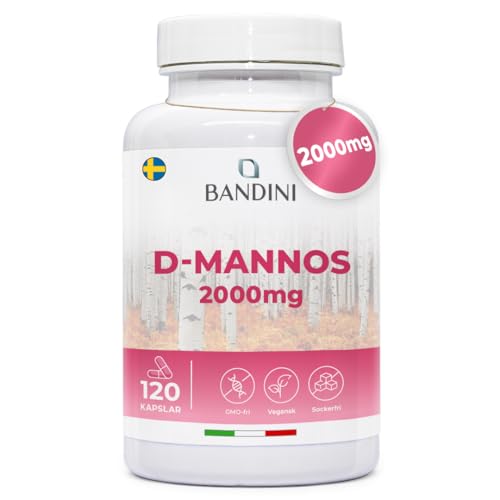 Bandini® D Mannose för cystit, 2 000 mg ren D-Mannose per daglig hög dos, för stöd och välbefinnande i urinvägarna, 100% vegansk och GMO-fri Mannos, 120 rena kapslar