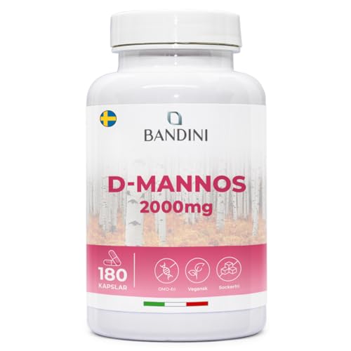Bandini® D Mannose för cystit - 180 kapslar 2 000 mg ren D-mannos per daglig dos - hög dos - stöd för urinvägarna och kosttillskott för välbefinnande - cystit med ren mannos - 100% vegan