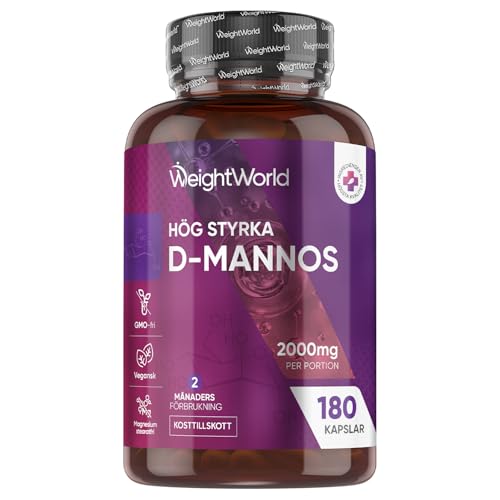 D-Mannose Kapslar - 2000 mg per portion - 180 Mannose Kapslar - Vegan & Magnesium Stearate Free - Alternativ till D Mannose Pulver - Kosttillskott från WeightWorld