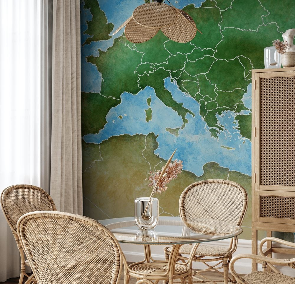 Fototapet -Cartina disegnata a mano del Mediterraneo Europa Africa e Medio Oriente - Vardagsrum - Scandiwall - Världskarta