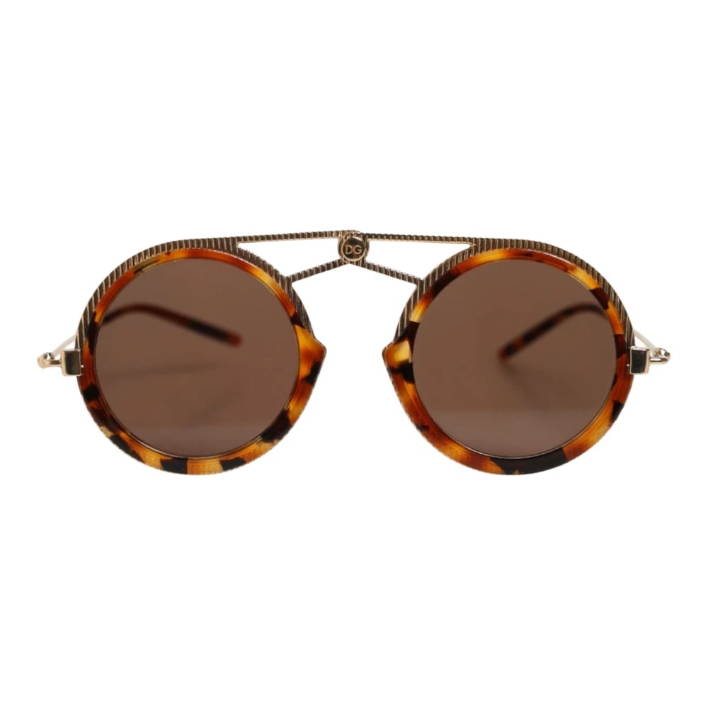 Dolce & Gabbana, Accessoarer , Dam, ONE Size, Gold Havana Frame Fatto A Mano Solglasögon