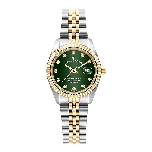 Jacques Du Manoir Inspiration damarmbandsur rostfritt stål, 34 mm, rostfritt stål armband, färg: guld/silver, 5 bar, urtavla: Grön, kristaller, datumvisning, JWN02301