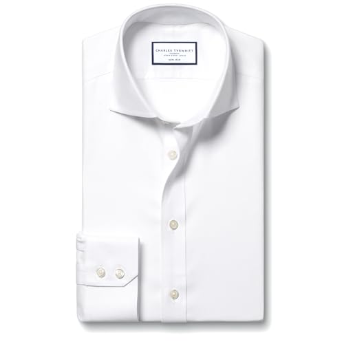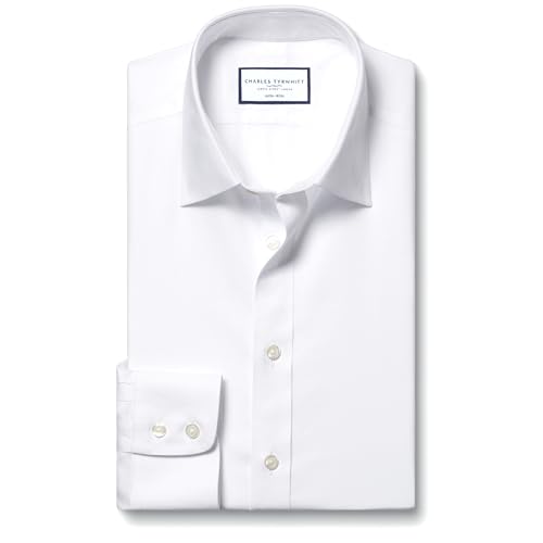 Charles Tyrwhitt Klassisk krage skrynkel- och strykfritt bomull formell skjorta – vit enkel manschett storlek 16,5/35