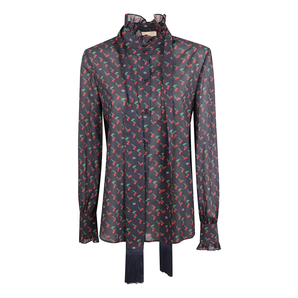 Valentino Garavani, Blusar & Skjortor , Dam, S, Körsbärs Tryck Ruffle Manschett Skjorta