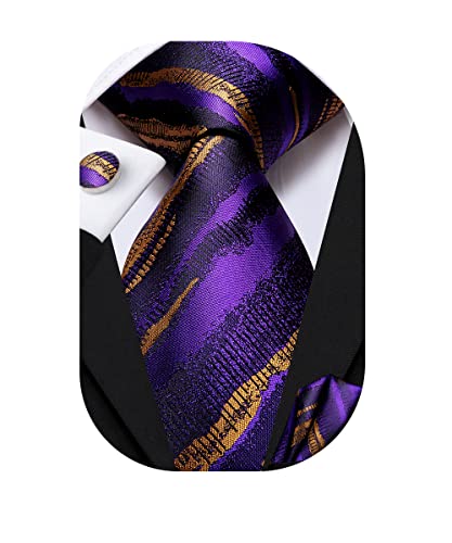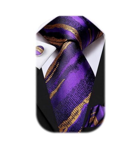 Dubulle slipsset för män, paisley ränder, slipsset för män, näsduk, manschettknappar, bröllop, formell slips, C lila/guld, M