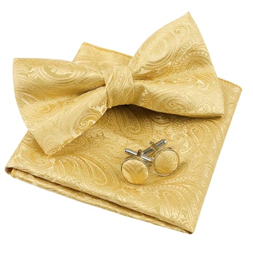 Alizeal mäns Paisley fluga, näsduk och manschettknappar set, 168-Guld-1, en storlek