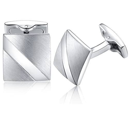 HONEY BEAR Silver rostfritt stål fyrkantiga manschettknappar för män, Rostfritt stål, guld, nickel, plast, silver, mässing, utan sten
