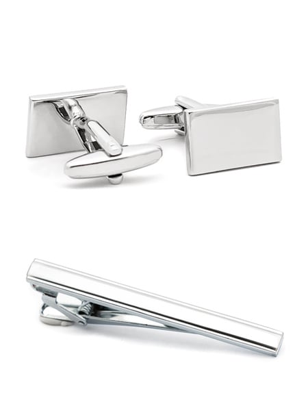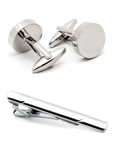 TRE Slipsnål och manschettknappar Kronor Silver/blå