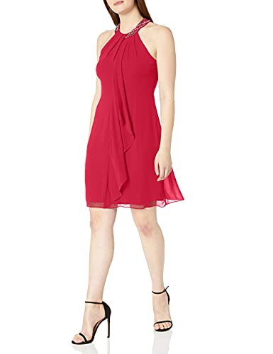 S.L. Fashions Kvinnors juvel hals mantel klänning liten och vanlig, Cerise, 42 SE