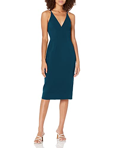 Dress the Population Lyla dopp ärmlös anpassad midi-mantel klänning för kvinnor, Påfågelsblå, M