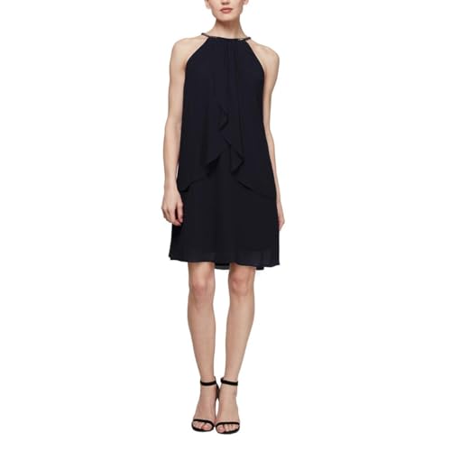 S.L. Fashions Dam juvel hals mantel klänning cocktail, Marinblått Xsp, 36 SE/Liten