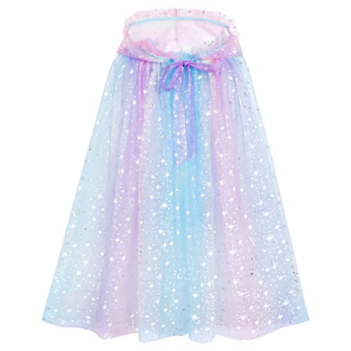 XEPST Prinsessa mantel med huva – färgglad prinsessmantel med glittrande paljetter – maskeradaccessoar för halloween och juldräkt