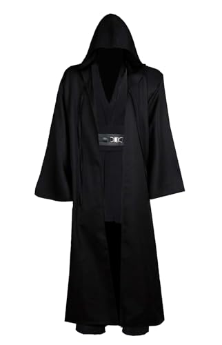 Zngewcv Män Anakin Skywalker cosplay kostym riddare svart tunika mantel med huva morgonrock Jedi-uniform kostym halloween outfit (svart helt set, medium)