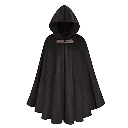 maxToonrain medeltida kostym med huva, norra riddare, renässans, mantel med huva, vintage gotisk häxa, trollkarl, viktoriansk halloween, maskeraddräkt (svart, 130 cm - herr)