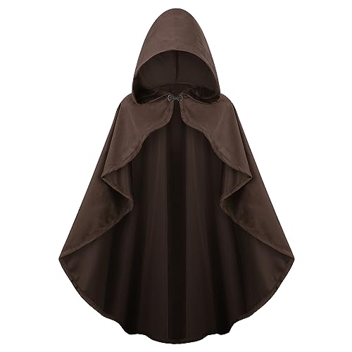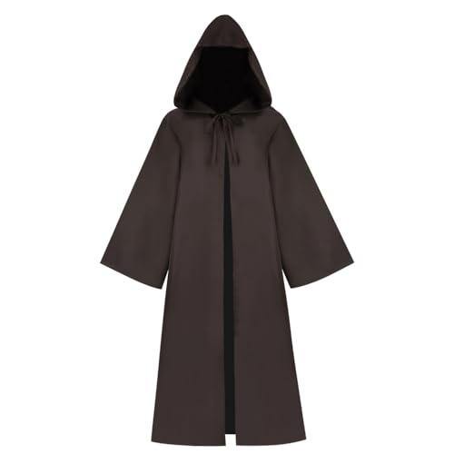 MaxToonrain medeltida kostym med huva, northern Knight Renässance mantel med huva, vintage, gotisk häxa, trollkarl, viktoriansk halloween, maskeraddräkt (brun, 102 cm - herr)