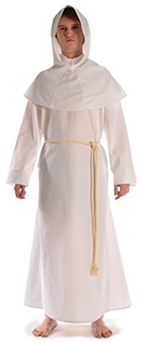 HEMAD Munkens mantel - Frock - Med separat huva - Bomull - LARP-kläder - Vit L/XL