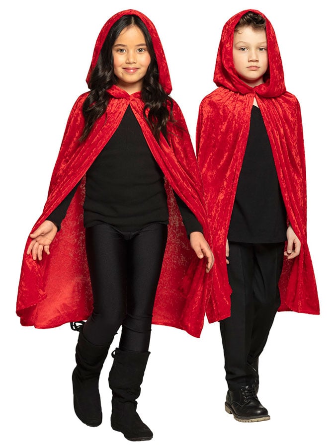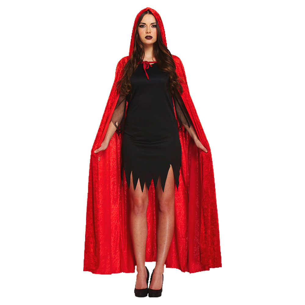 Myir JUN Unisex Halloween mantel med huva, lång cape, rock, sammet, maskeraddräkter för vuxna, barn, cosplay (XL, röd sammet)