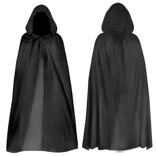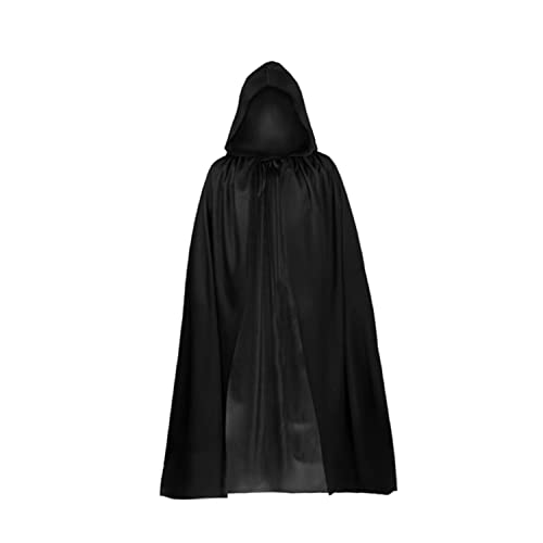 Myir Mantel med huva, unisex, satinmaterial, perfekt utklädning till cosplay, halloween, jul eller maskerad, för vuxna (svart, L)