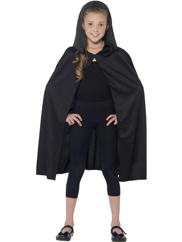 TSHAOUN svart halloween-mantel med huva, häx-cosplaytillbehör för vuxen och barn, maskeraddräkt, familjefest, 140 cm (svart)