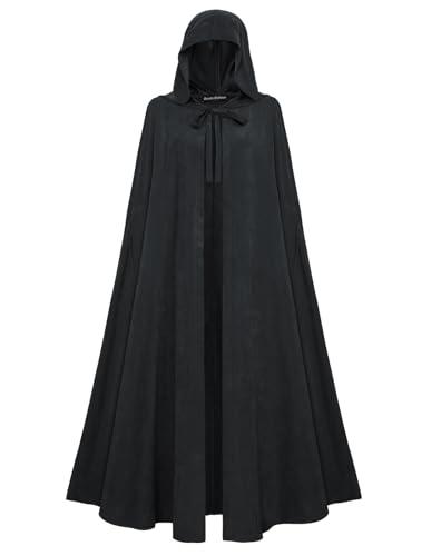 Myir JUN Unisex Halloween mantel med huva, lång cape, rock, sammet, maskeraddräkter för vuxna, barn, cosplay (XL, svart sammet)