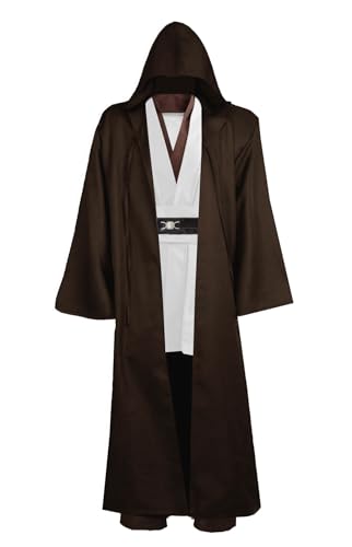 Bichingda Vuxen Tunika Riddare Kostym - Brun Jedi Mantel med Huva Väst Skjorta Byxor Kläder för Halloween