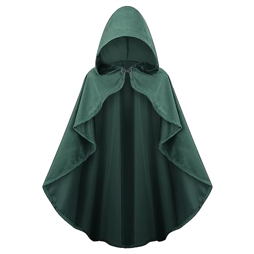 BIGXIAN Lång mantel med huva sammet cape häxa kostym halloween kostymer för kvinnor män, Mörkgrön, L
