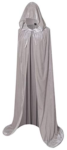 BIGXIAN Lång mantel med huva sammet cape häxa kostym halloween kostymer för kvinnor män, Grått, XL