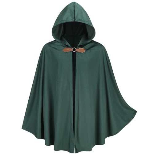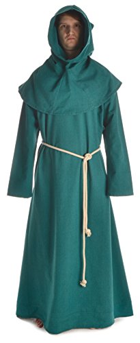 maxToonrain medeltida kostym med huva, northern Knight Renässance mantel med huva, vintage, gotisk häxa, trollkarl, viktoriansk halloween, maskeraddräkt (smaragdgrön, 102 cm - herr)
