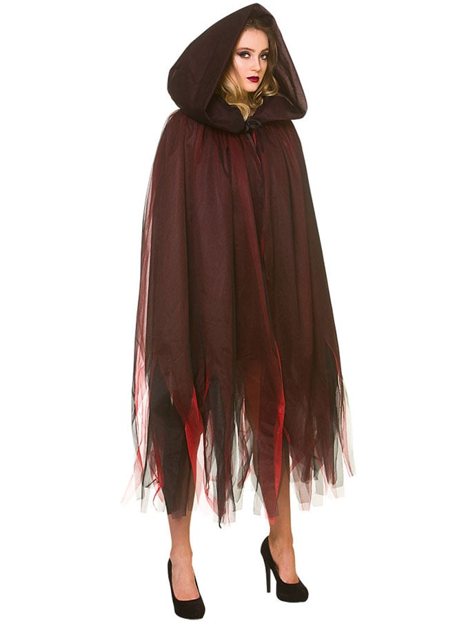 Scarlet Darkness Renässans mantel med huva halloween kostym svart