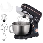 JOCCA - 350W respostery knådande mixer med friktionsautorotation, 5 hastigheter, 3'5L skål i rostfritt stål, knåda, bat, emulgerar, stavar och krom mixer (svart)