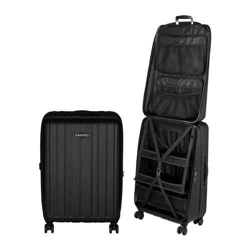 Casyro Resväska att fälla upp, resväska med hårt skal, resväska kan användas som garderob, rullväska med 4 hjul, 120 l, L, svart, svart, 77.5 x 50 x 30.5 cm, Resväska med hårt skal med 4 hjul