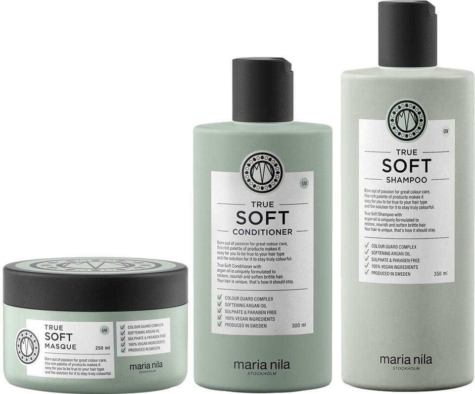 Maria Nila True Soft Shampoo 350ml + Conditioner 300ml + Masque 250ml Trio