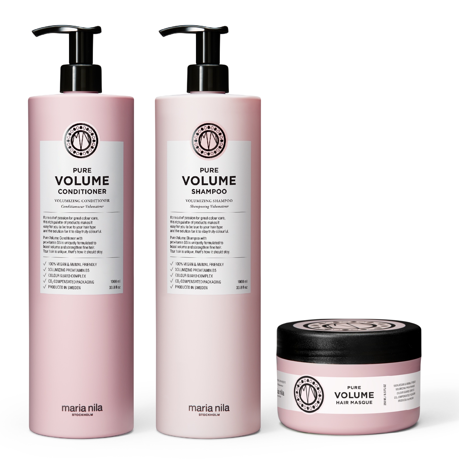 Maria Nila Pure Volume Shampoo + Conditioner 1000ml & Masque 250ml
