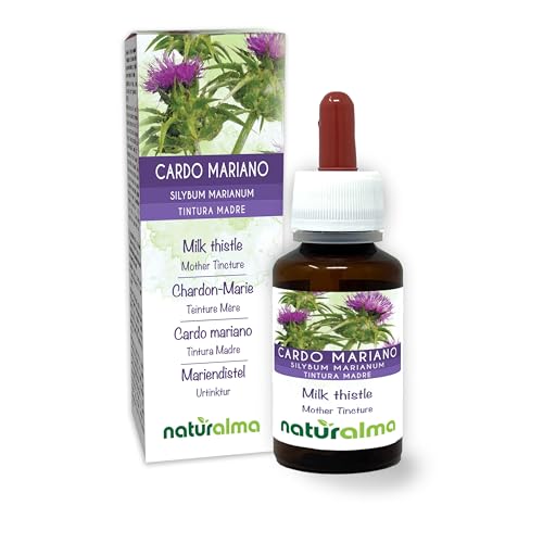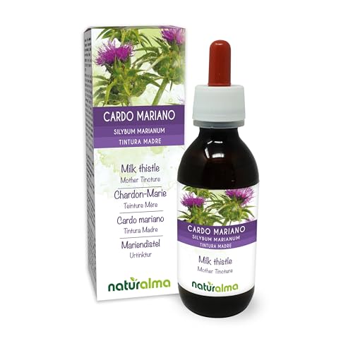 Mariatistel (Silybum marianum) frukter och ört Alkoholfri modertinktur Naturalma - Flytande extrakt i droppar 120 ml - Kosttillskott - Vegan