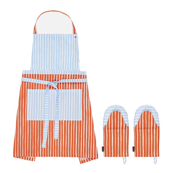 Marimekko - Piccolo förkläde och ugnsvantar vit/tomatröd/blå