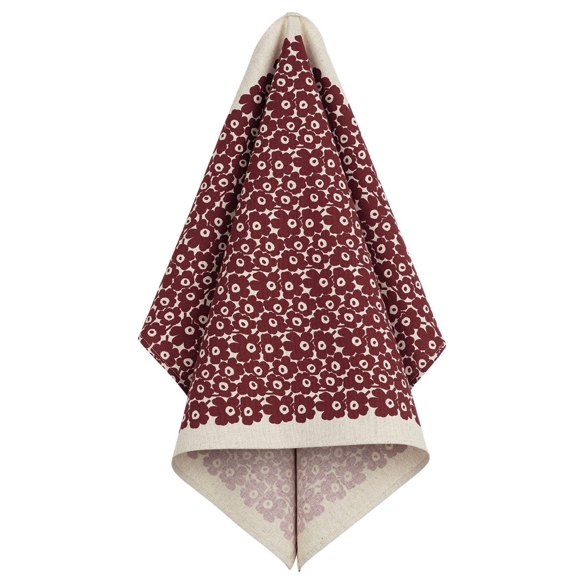 Marimekko Unikko kökshandduk 43 × 70 cm, vanilj/vinröd/röd