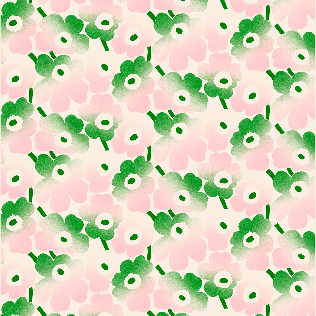 Marimekko Pieni Unikko Häivähdys Rosa/Grön Tyg