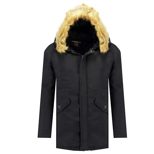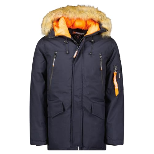 Geographical Norway Arnold Herr lång varm parkas för män höst vinter – vattentät vattentät kappa – utomhusjacka med pälshuva – vindjacka – herr (marinblå S), Marin, S