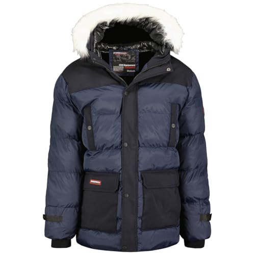 Geographical Norway Bagway herr varm parkas höst vinter – vattentät vattenavvisande kappa – utomhusjacka med pälshuva – vindjacka – herr (marinblå S), Marin, S